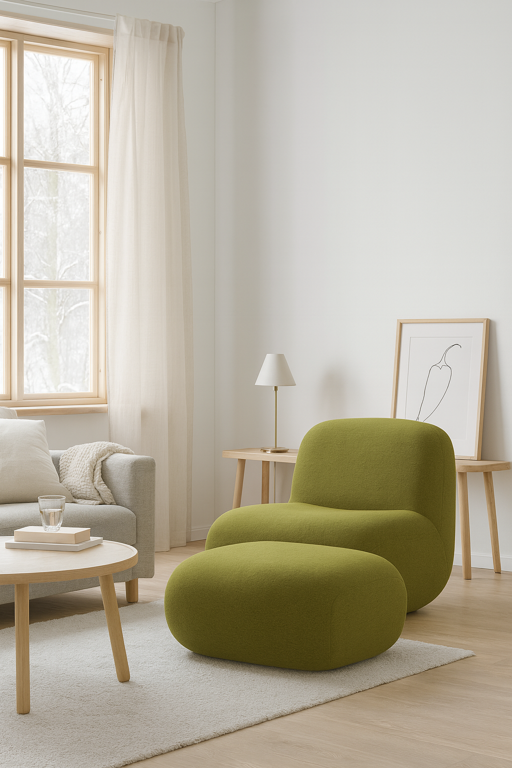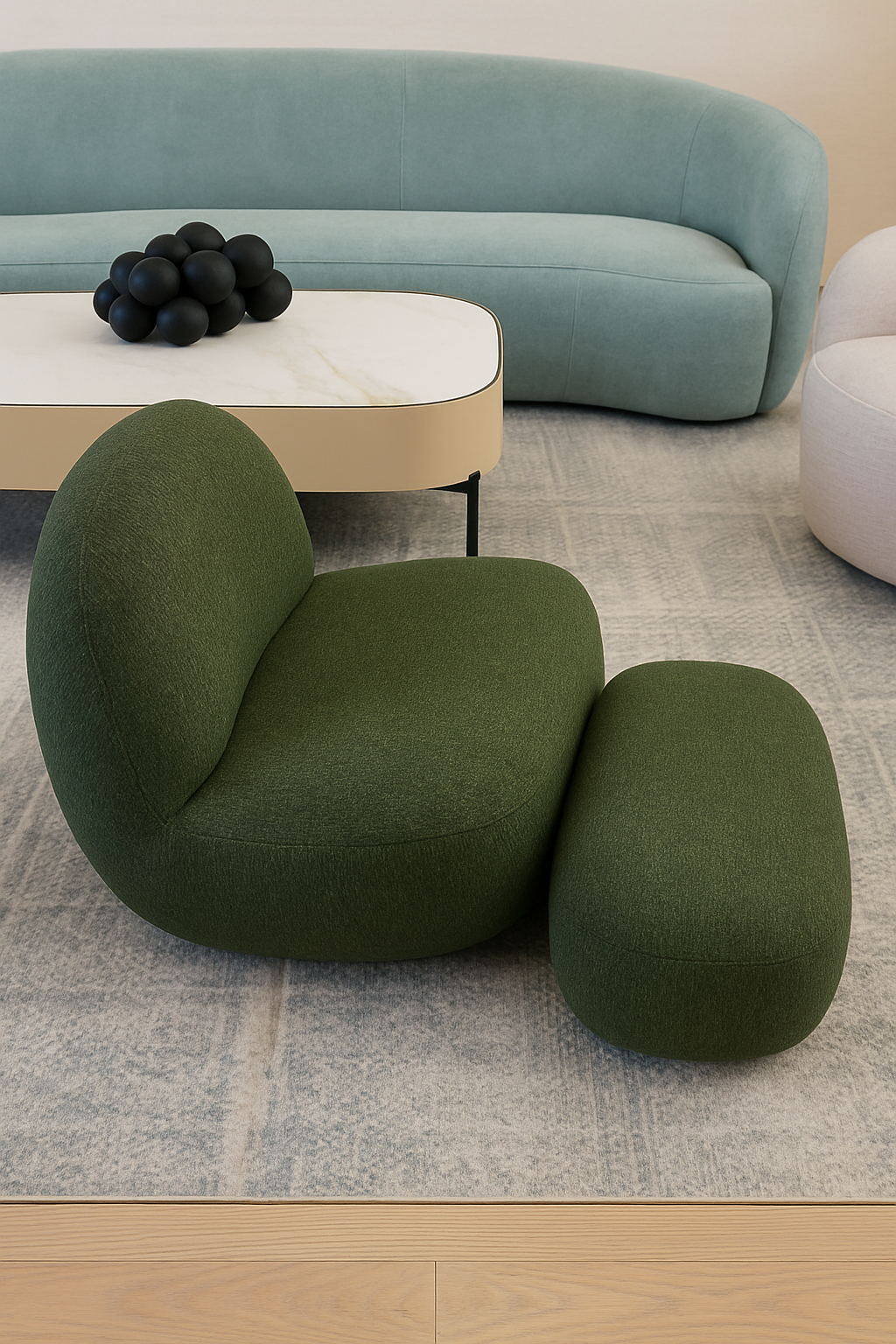 Organic Modular Lounge Chair with Ottoman - Contemporary Sculptural Seating in Moss Green Upholstery