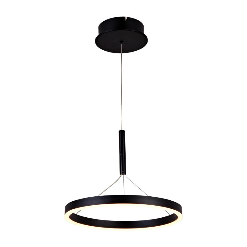 This exceptional lighting system represents the perfect fusion of minimalist sculptural sophistication with cutting-edge integrated LED strip illumination technology. Its professional interface with advanced circular ring construction creates comprehensive task and ambient lighting control while providing reliable energy-efficient integration. The combination of premium black metal finish with distinctive circular ring design, integrated LED strip technology, adjustable suspension system, cylindrical rod, ceiling canopy, downward-focused light output with halo effect, and elegant minimalist composition ensures this fixture serves as both sophisticated architectural statement element and advanced functional task and ambient illumination management component.