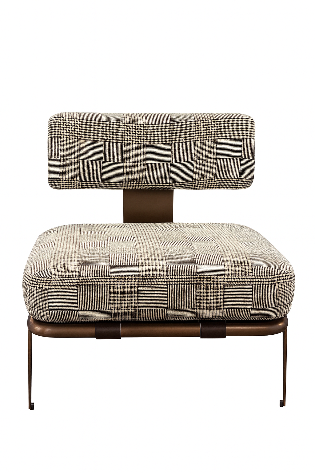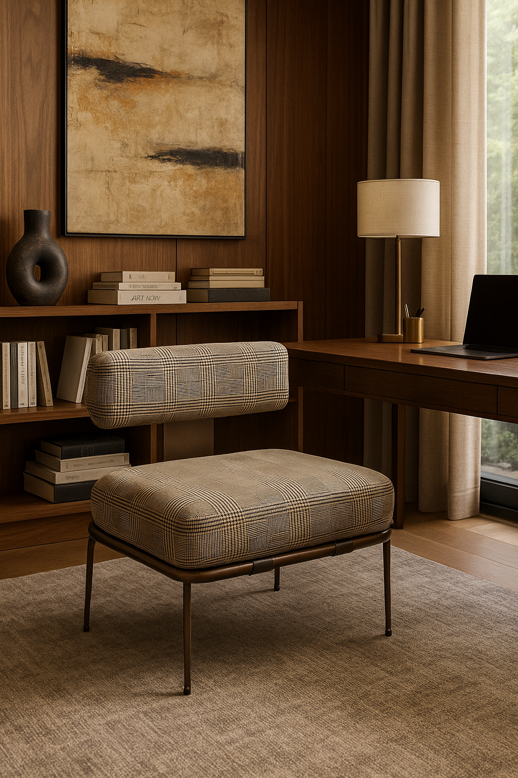 Firenze Eleganza embodies the harmony of Italian craftsmanship and contemporary minimalism. Its tailored upholstery reflects heritage textile patterns structured, timeless, and sophisticated while the slender metal base adds a modern architectural clarity. Every proportion is intentional, creating a piece that feels light yet grounded, stylish yet welcoming. It is designed to elevate a room quietly, through thoughtful form and rich material contrast.