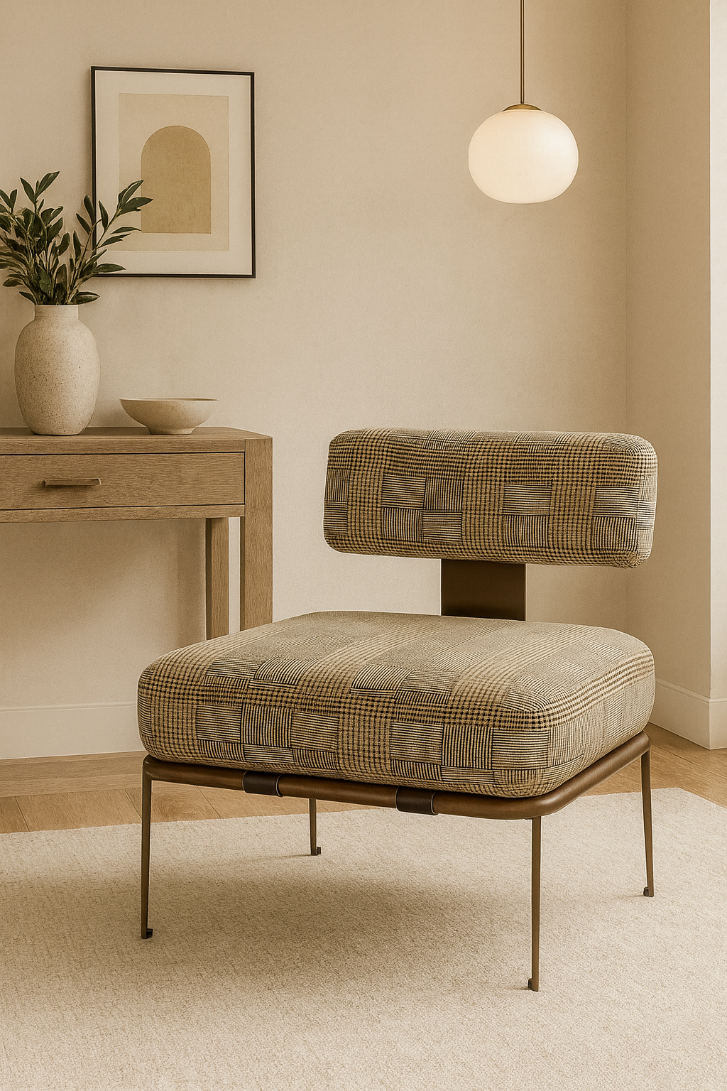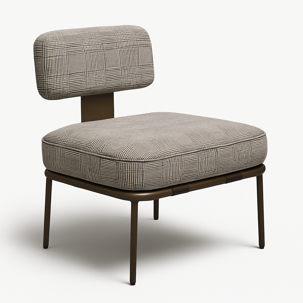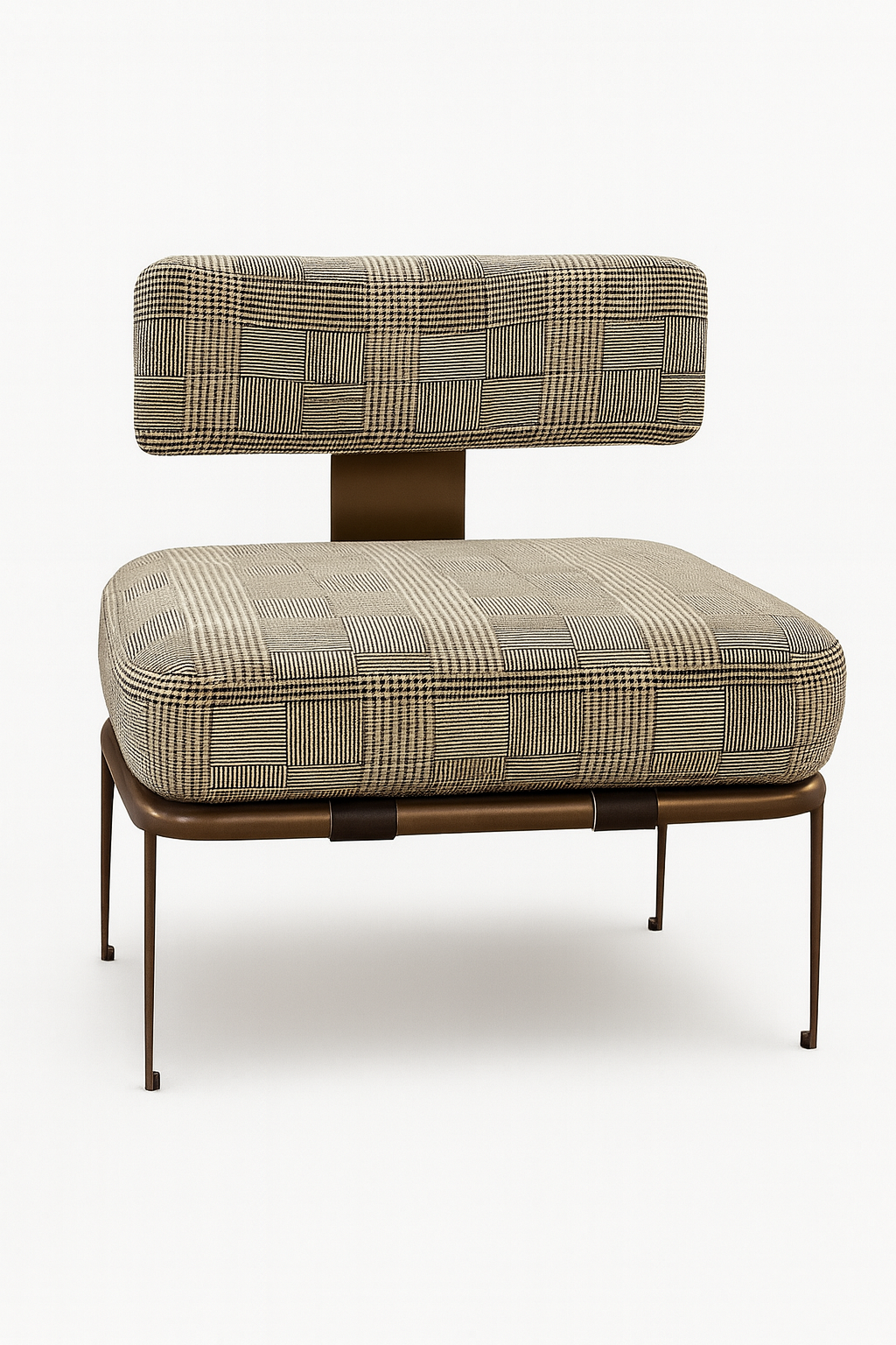 The Firenze Eleganza is a refined accent chair crafted to bring effortless sophistication into any space. Upholstered in a premium patterned fabric inspired by classic Italian tailoring, it pairs a generous cushioned seat with a sleek metal frame finished in a warm bronze tone. With its sculptural backrest and modern silhouette, this chair delivers both comfort and understated luxury perfect for lounges, offices, reading corners, or elegant living rooms.