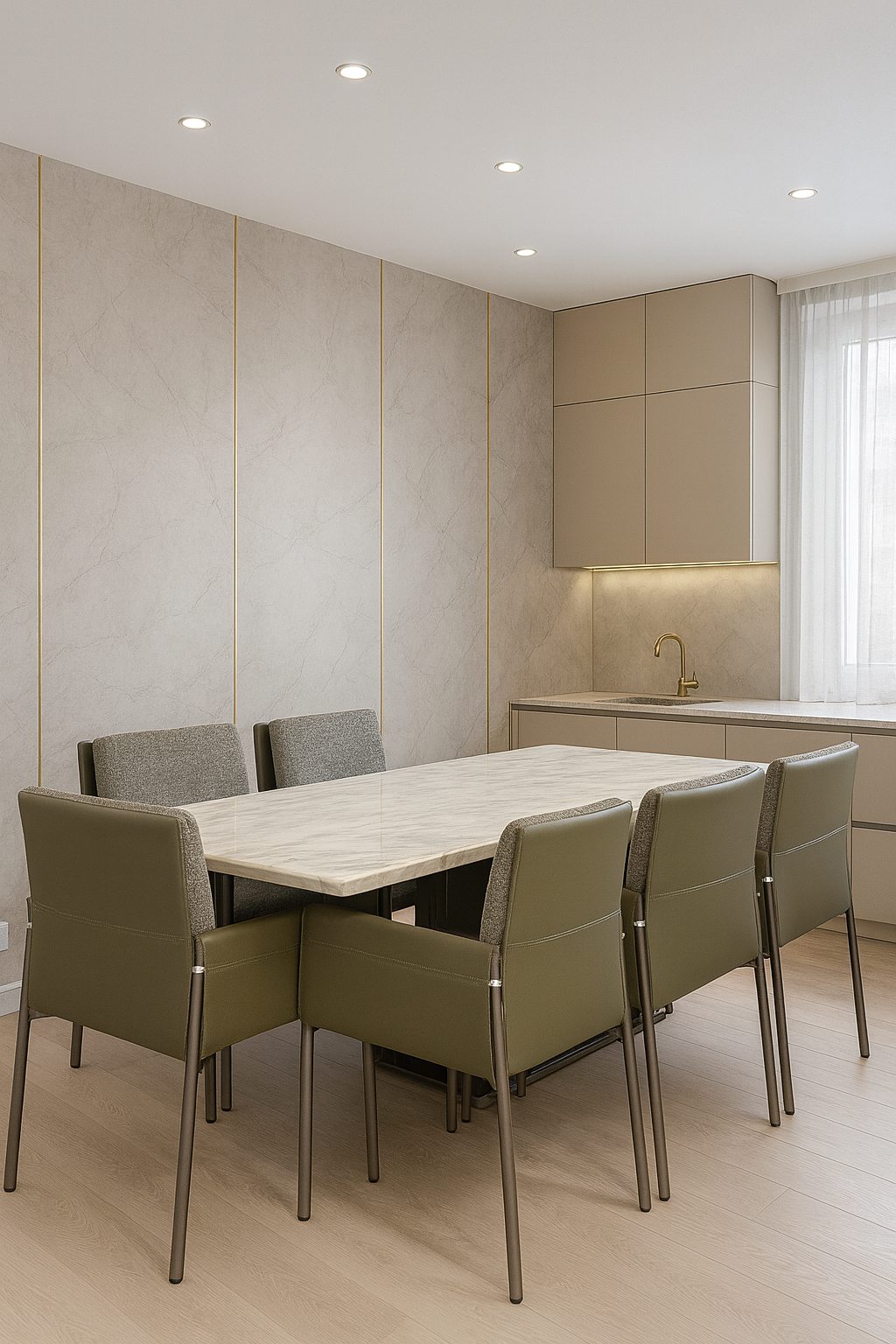 This table seamlessly anchors modern, contemporary, transitional, or even industrial-chic interiors. Pair with upholstered chairs for softness, metal designs for edge, or mix styles for an eclectic curated look. The neutral palette adapts effortlessly to evolving décor trends.