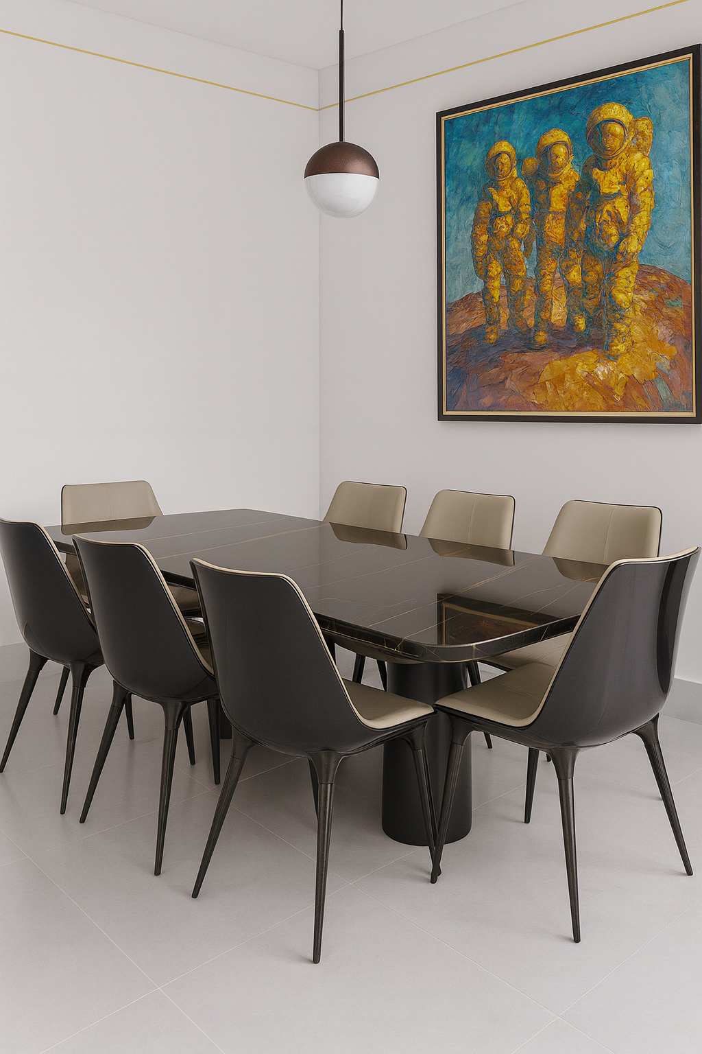 Make a bold architectural statement with this striking modern dining table that commands attention through its dramatic material contrast and sculptural presence. The sophisticated design bridges contemporary minimalism with timeless luxury.