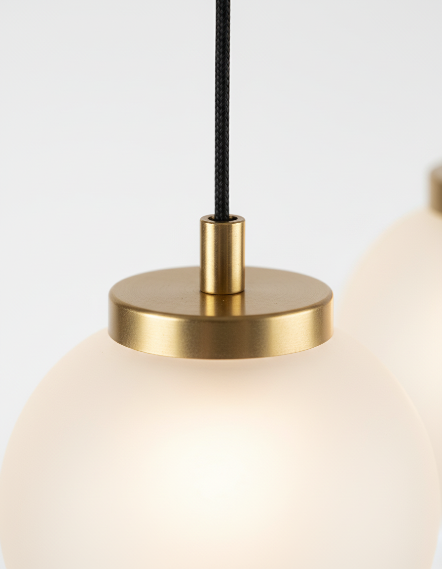Spherical Opal Glass Diffusers: Each light is housed in a high-quality frosted opal glass globe, ensuring a soft, uniform, and glare-free glow that provides both ambient light and visual warmth.