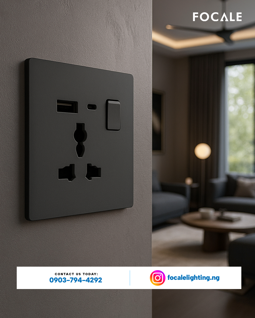The FL-S.80 SKIN FEEL BK 13A 3-Pin Switched Socket with USB & Type-C is a high-utility electrical essential from the Focale collection, designed to "Illuminate with intention". This advanced socket combines standard power access with modern charging ports, all finished in the series' signature architectural aesthetic.