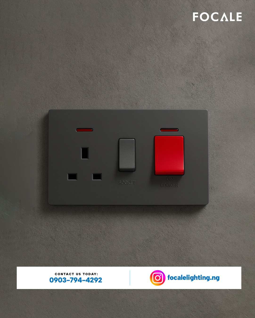 The FL-S.80 SKIN FEEL BK 45A Architectural Cooker Unit is a high-capacity power control solution from the Focale collection, designed to "Illuminate with intention". This heavy-duty unit combines the series' signature tactile elegance with the robust performance required for high-load kitchen appliances.