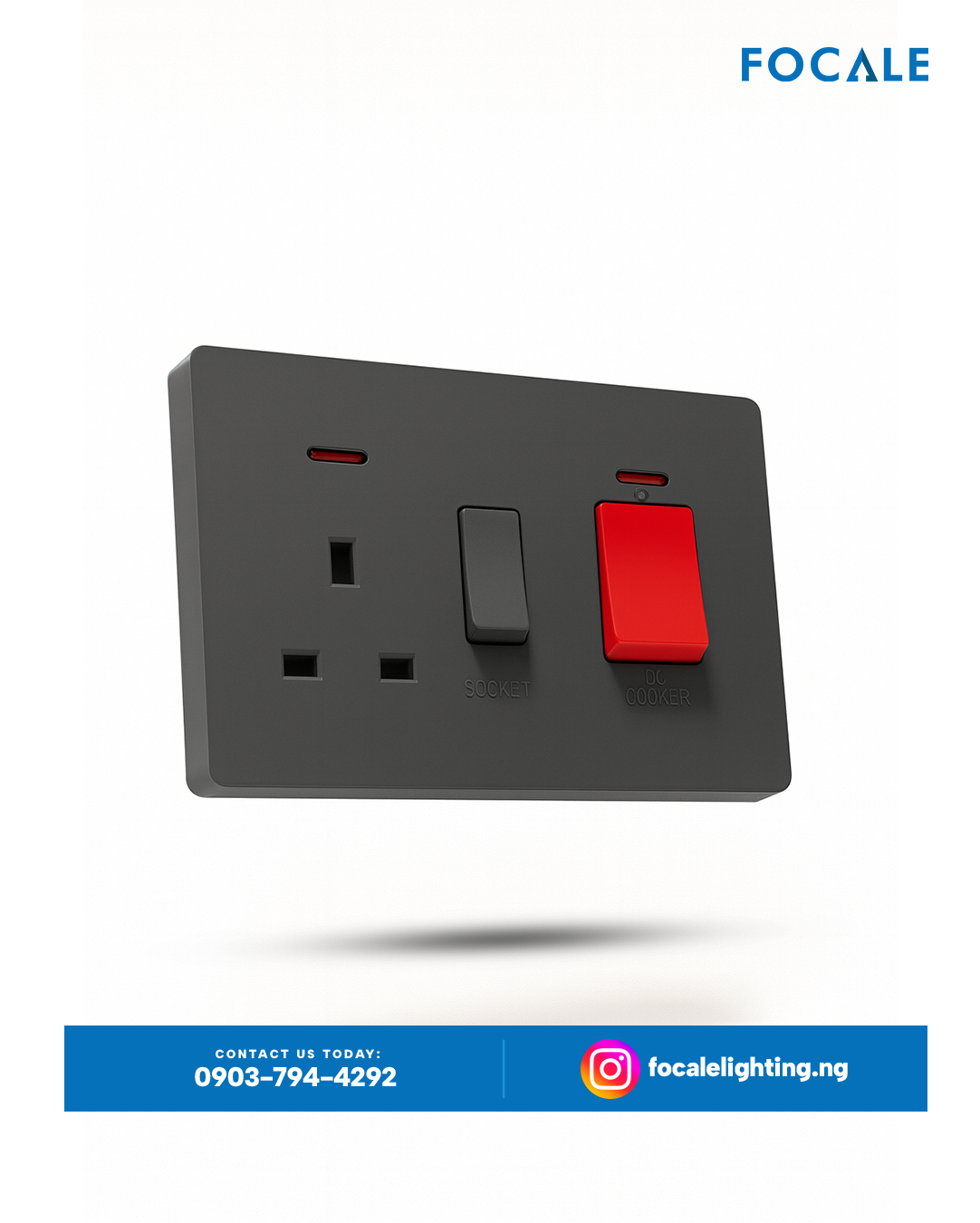 Dual Power Indicators: Equipped with two discreet, horizontal neon indicator lights that provide clear visual signals when both the cooker circuit and the secondary socket are active.