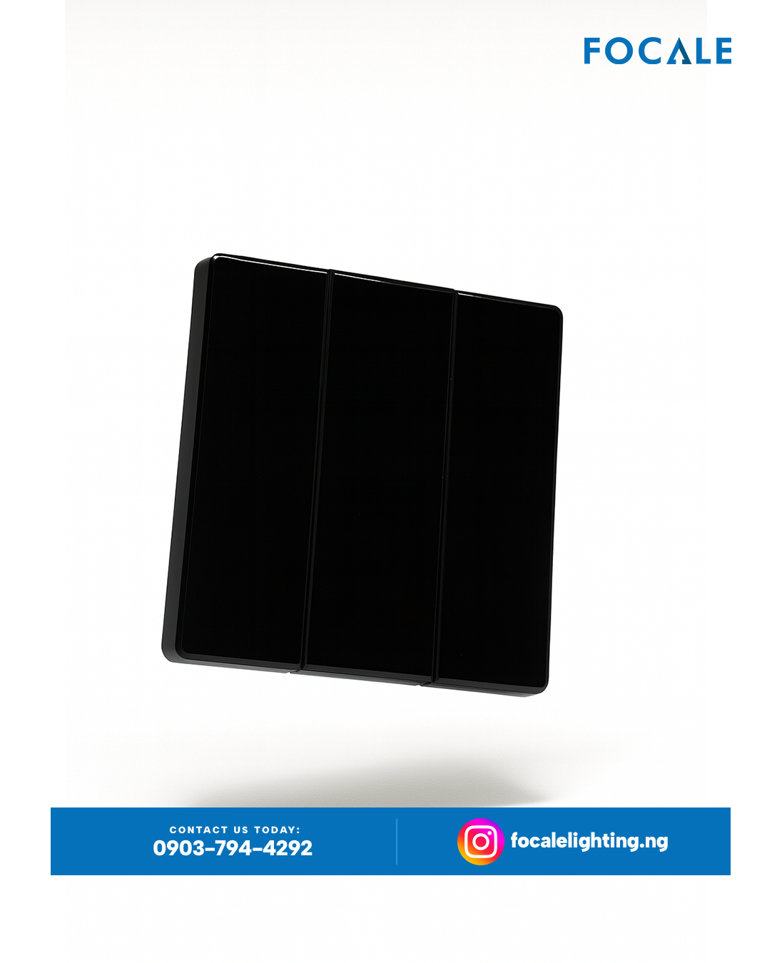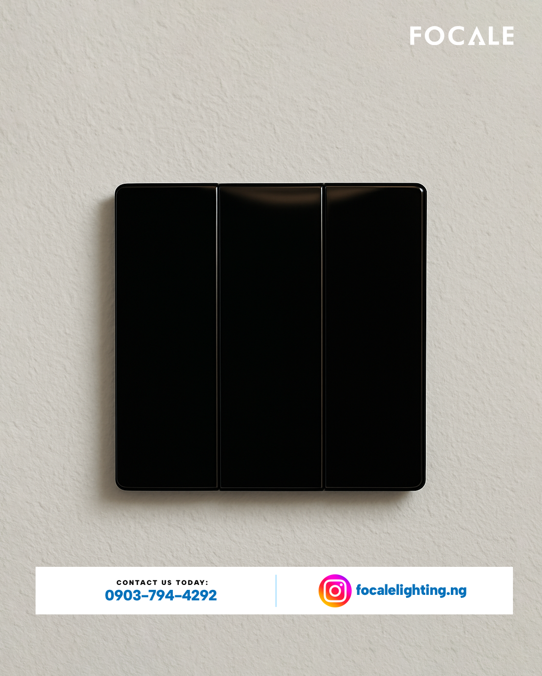 The FL-S7.5 GLASS BLACK 3 Gang 2 Way Architectural Switch is a premium multi-control touch-point from the Focale collection, meticulously designed to "Illuminate with intention". This fixture combines a high-gloss, sophisticated glass finish with expanded functionality for complex modern architectural spaces.
