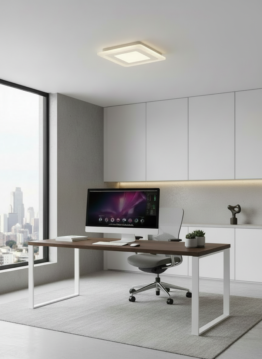 Modern Geometric Square Design: Offers a sharp, architectural alternative to standard circular fixtures, aligning perfectly with modern cabinetry, linear hallways, and office environments.