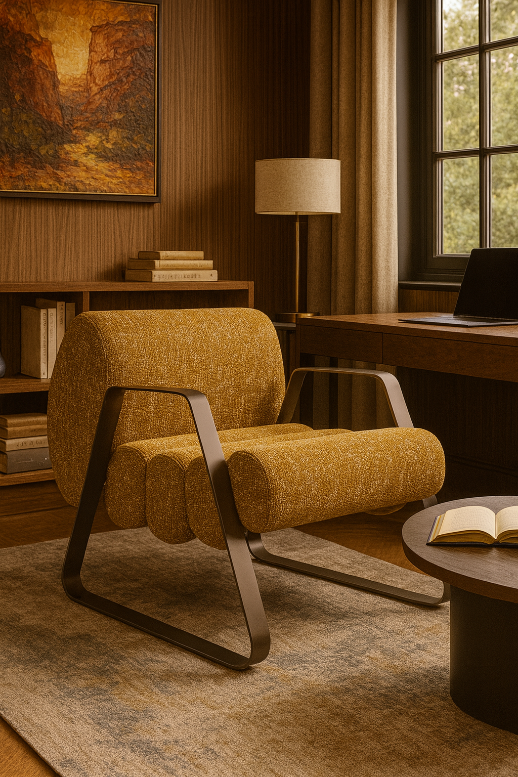 Ideal For: Interior designers, architecture enthusiasts, boutique hotel operators, executive office planners, residential homeowners with design-forward sensibilities, hospitality designers, commercial space planners, contemporary home furnishers, creative professionals, and discerning individuals seeking premium statement furniture solutions that create dramatically appointed spaces through contemporary architectural design and industrial-luxe furniture capabilities with distinctive geometric presence and sophisticated metallic-textile elegance.